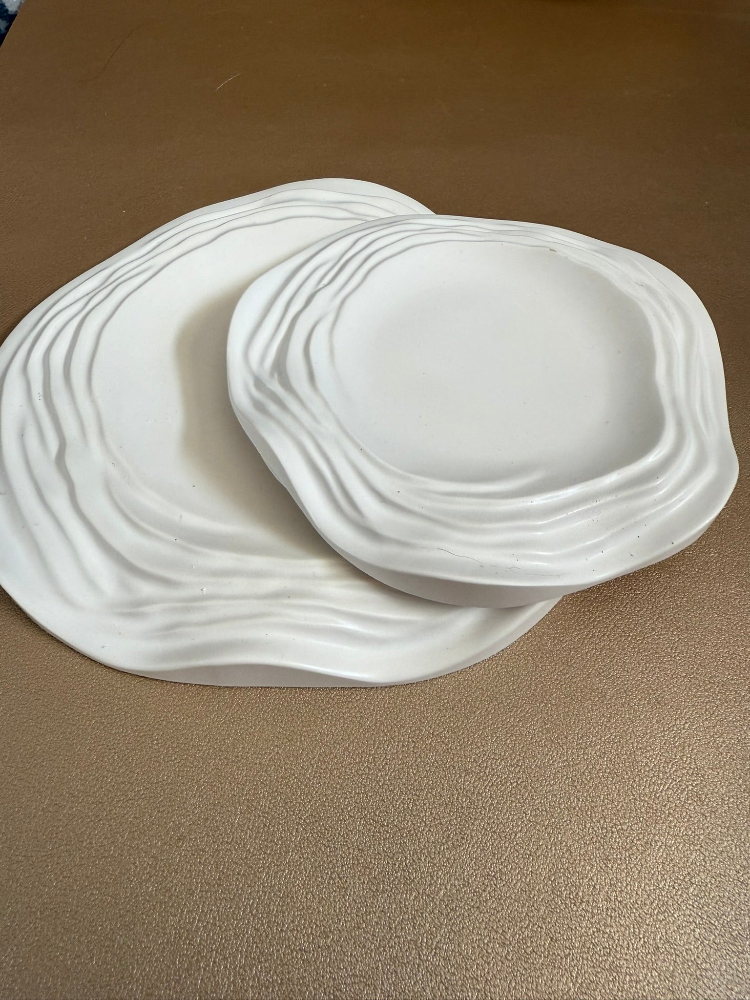 A refined pairing of sculpted elegance and natural charm, these trays feature flowing wave-like textures etched into a timeless stone-white finish, where artistry meets enduring design.